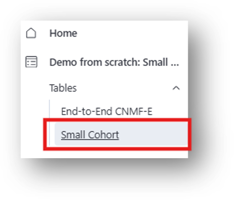 10. Please note that the results are also appended to the Small Cohort Data Table. To navigate directly to the Small Cohort Data Table, expand the left-hand menu by selecting