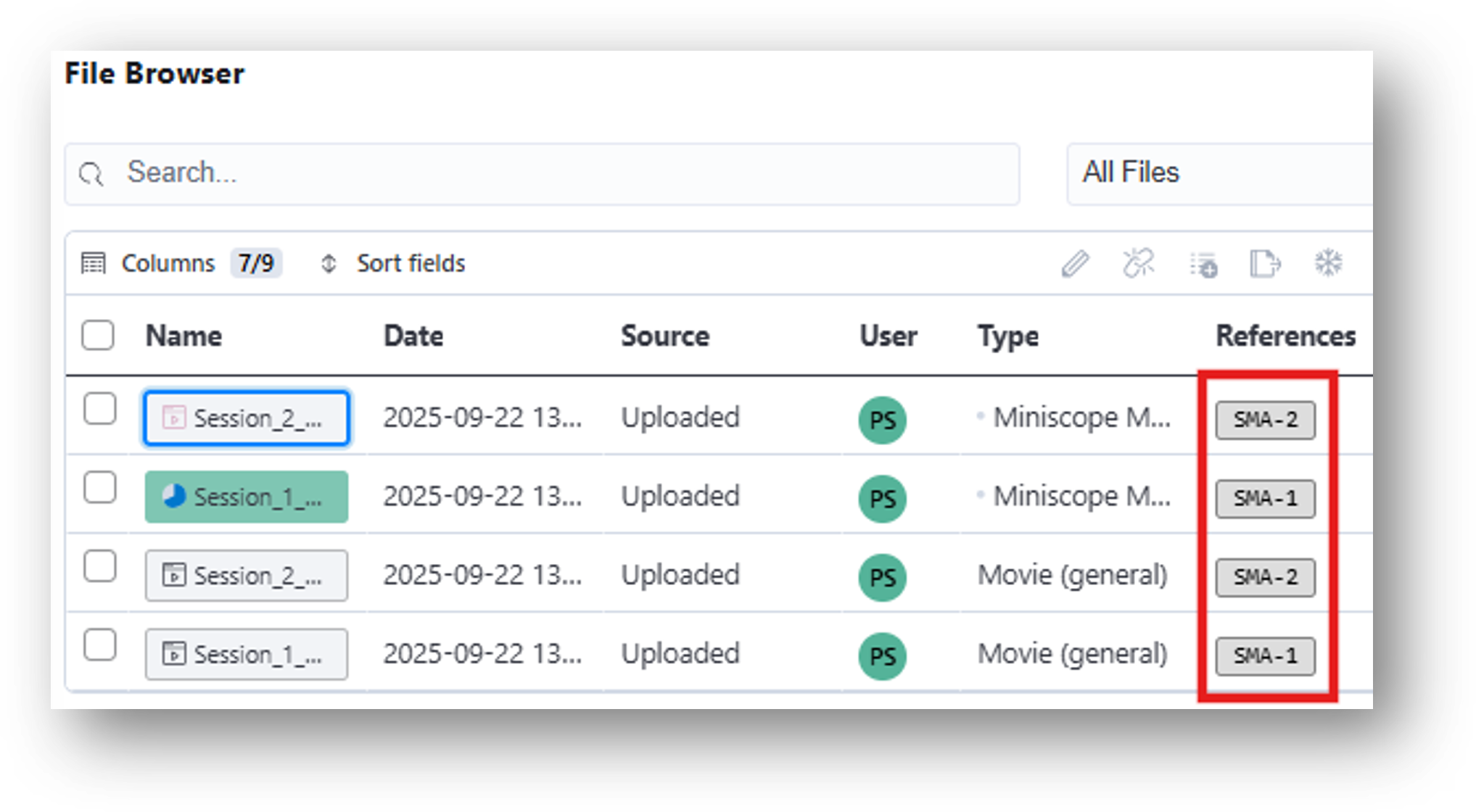 - Upload, manage, and use IDEAS intuitive design to correctly assign various file types, including miniscope movies, behavioral recordings, and annotation files.