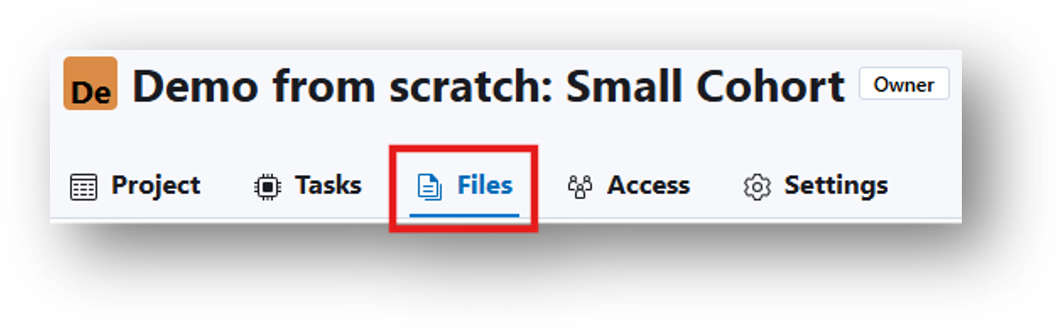Files can also be accessed from the main project page of Demo from scratch: Small Cohort. To do so: