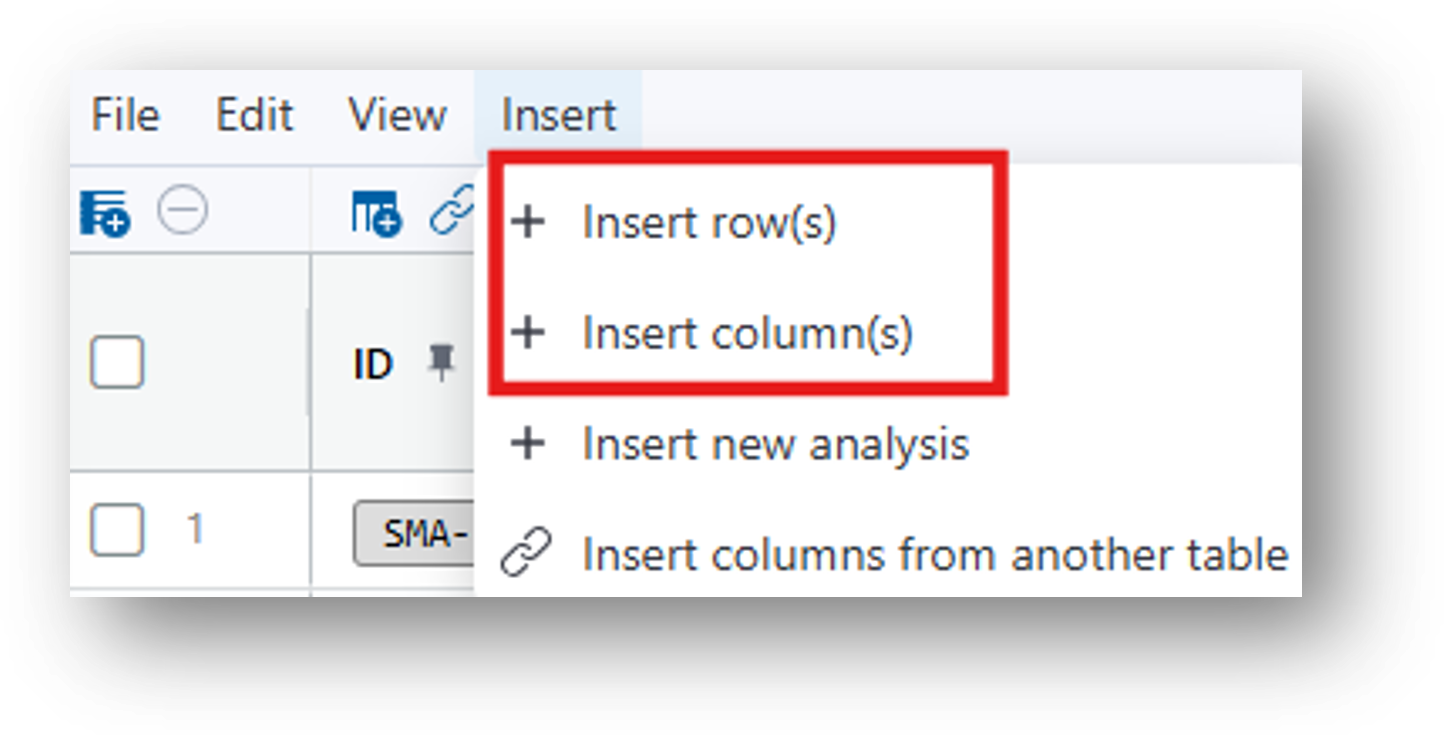 - Navigate to your original data table. Then select Insert>Insert new analysis or click the